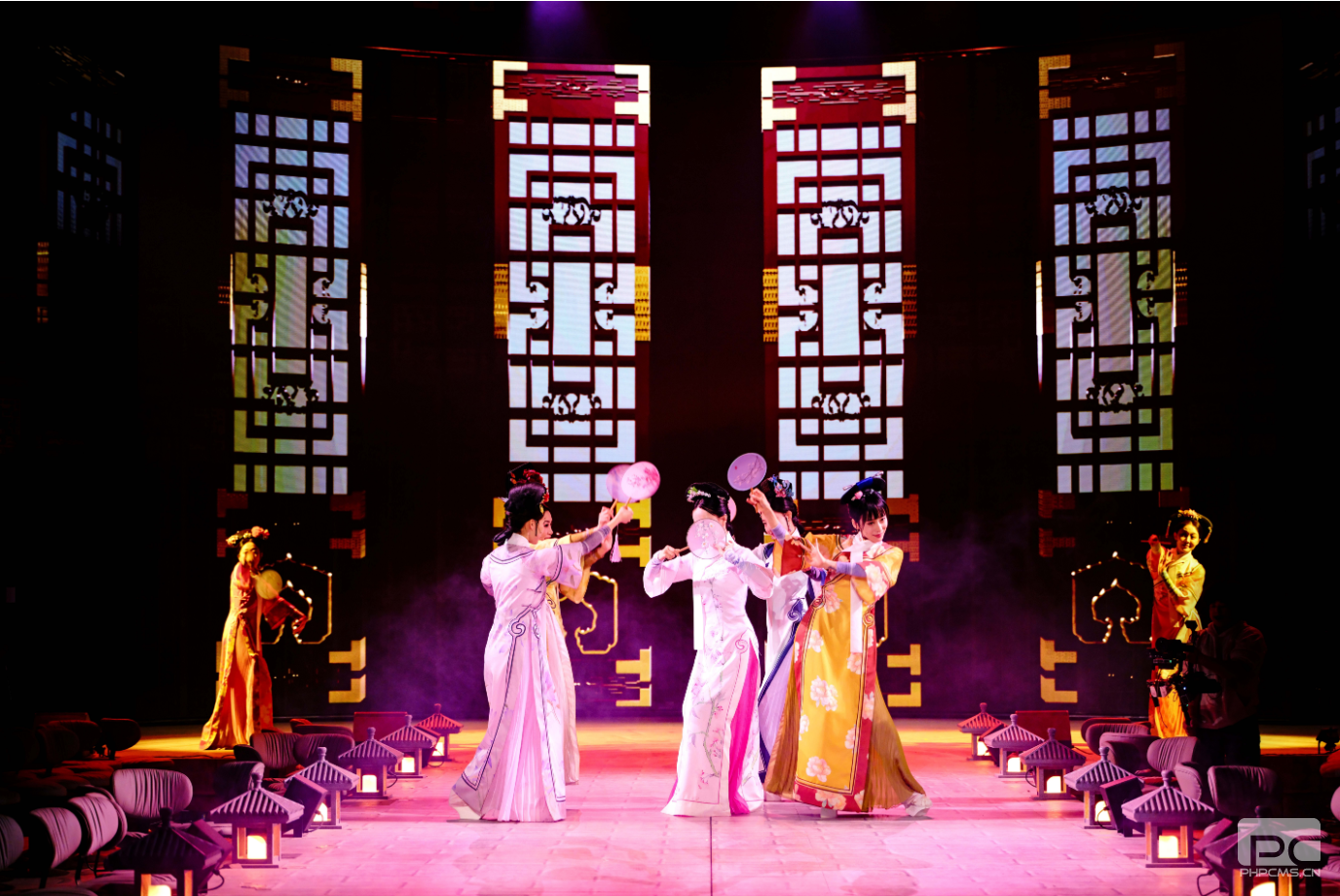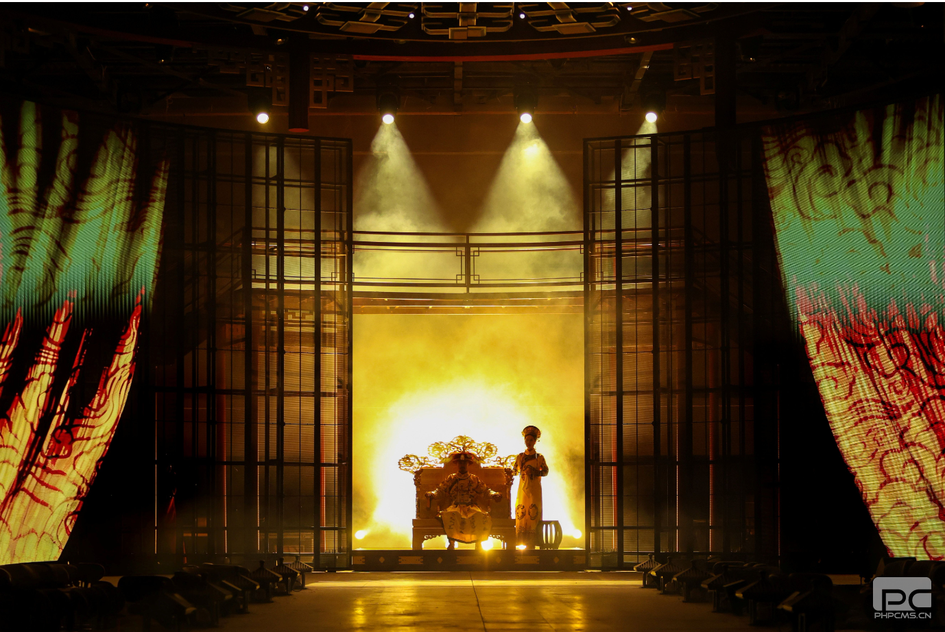 作为本剧最核心的创新点,《甄嬛传》沉浸版以“环境即剧情”的方式搭建整体观演逻辑。剧场内设置多个表演区域,宫廷空间在观众席之间展开,演员在不同区域中流动表演,剧情在观众身边发生、推进。