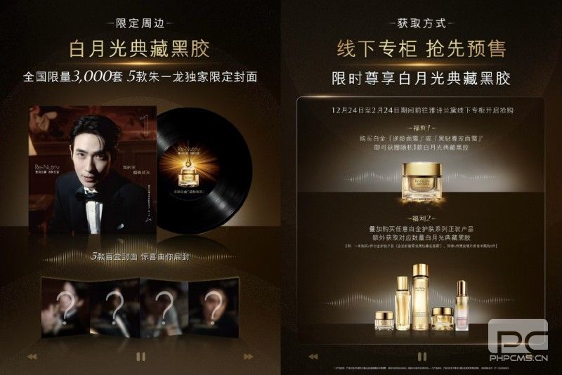 雅诗兰黛深信,至臻的美学体验,当是可感知、可珍藏的仪式。从音乐会上音乐、诗篇与光影交织的隽永意境出发,品牌将这份无形的感动,凝练于一份可触碰的实体艺术「白月光典藏黑胶」。这不仅仅是一张黑胶唱片,它是品牌哲学“美与时光共凝”的物质化身。其中五款朱一龙独家限定封面,如同月光的不同面影,静待启封,为每一次邂逅带来独一无二的惊喜。